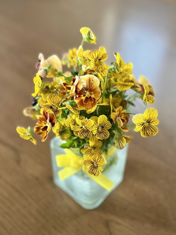 極小ビオラみたいに縮んでますが可愛いブーケになりました💛