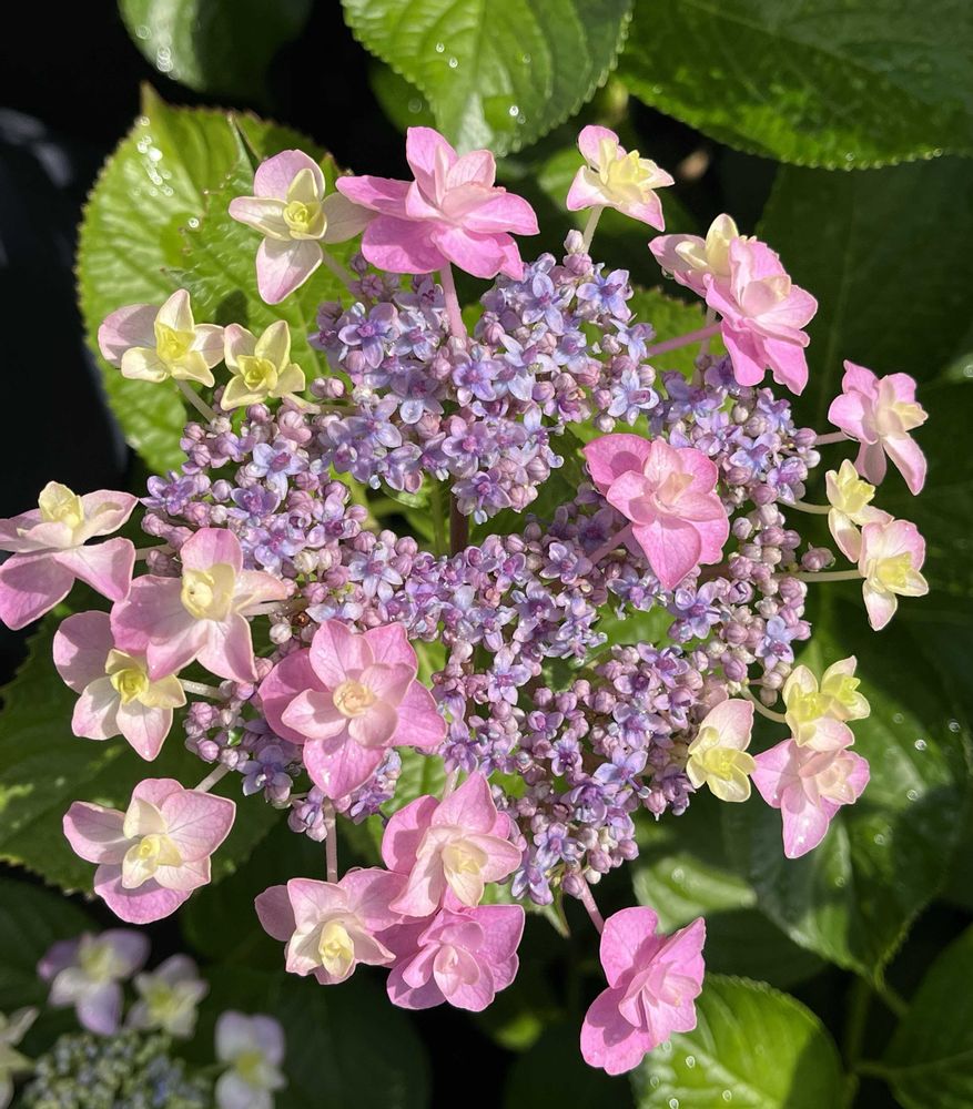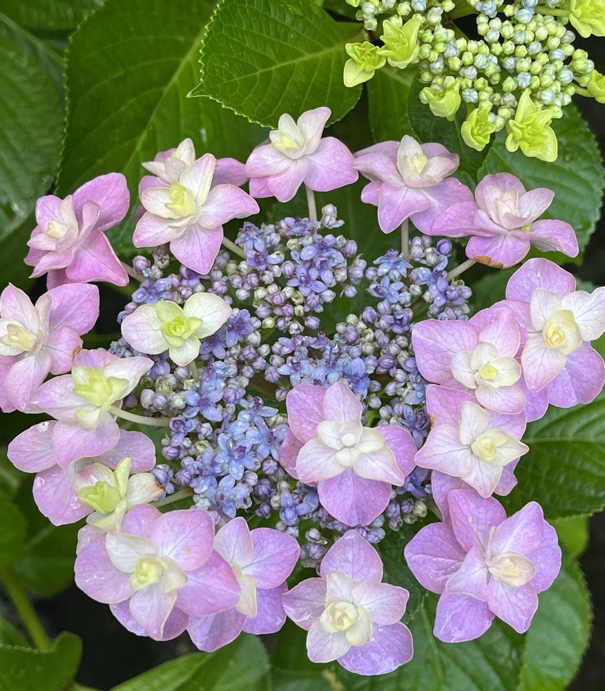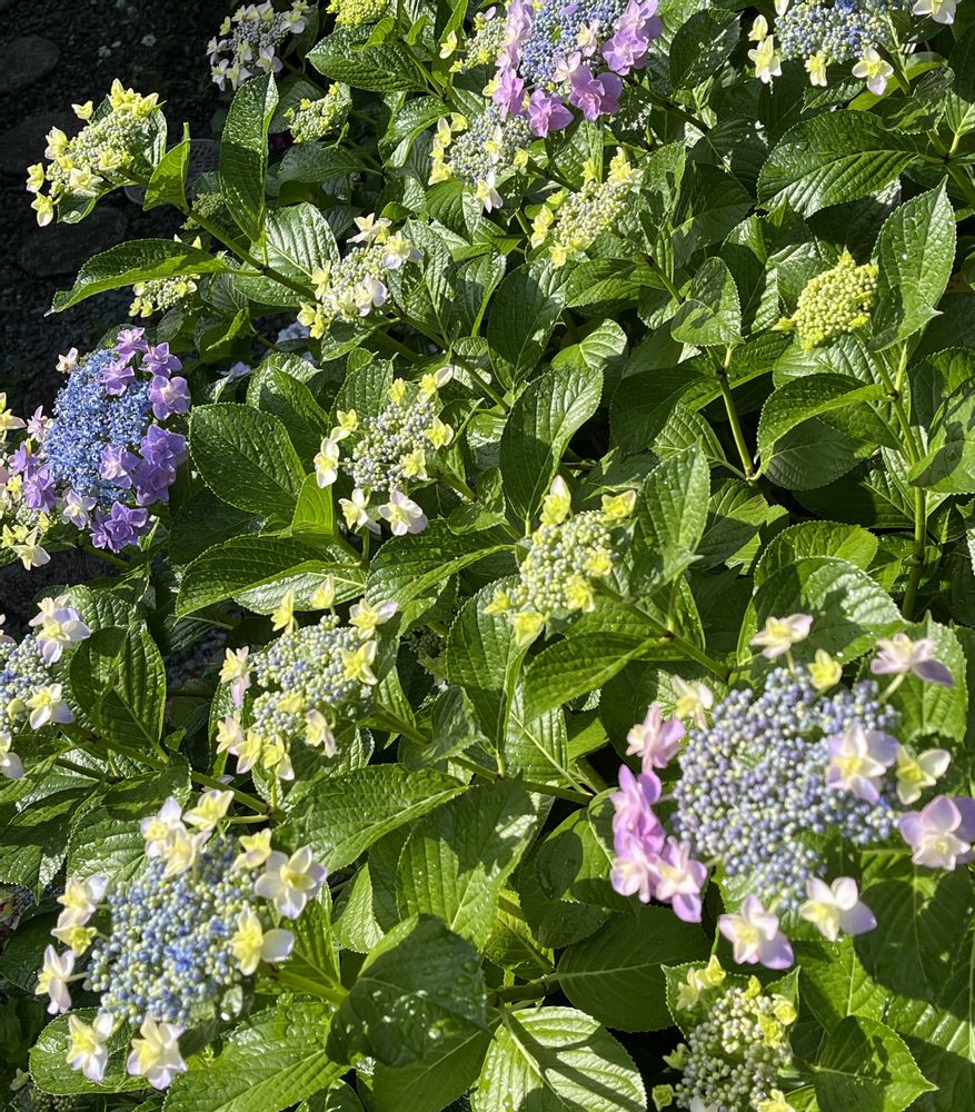 (最初は薄いパープル系だったかな 一昨年辺りに苦土石灰を撒いてピンク色に その名残で色が混ざっていると思います)