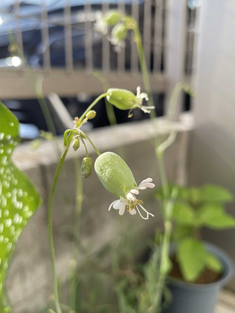 淡いグリーンの長い花茎と、風船のような玉に白い花弁が涼しげで✨🩵🩵🩵
