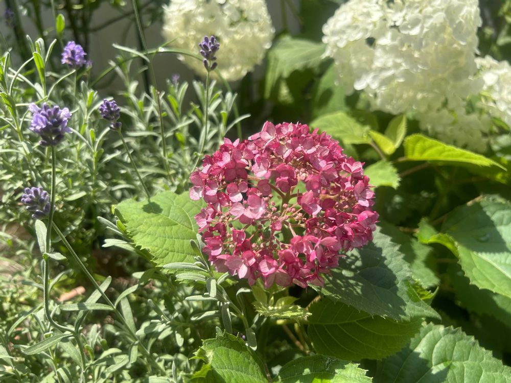 2枚目からは後ろに🤍アナベルとラベンダーは一度お花を✂️した後も次々と開花しています😉🎶