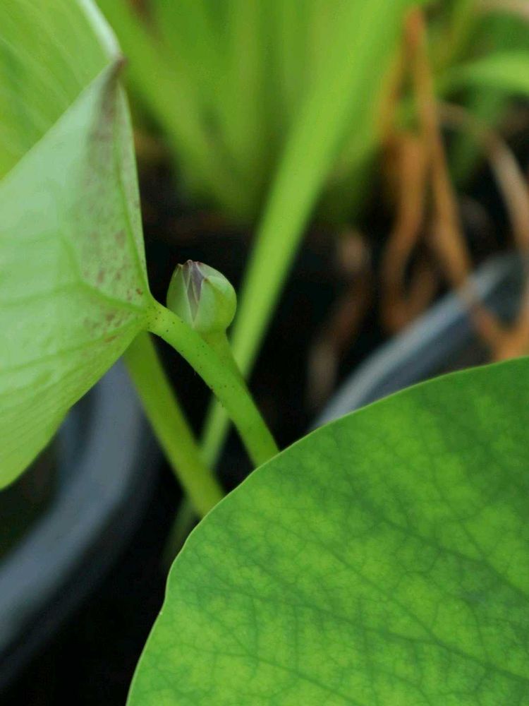 ミセスはメインの鉢はなんかダメそうで、予備で残した一番ショボイ蓮根から花芽が上がりました♪何が起こるか分からないもんです(笑)