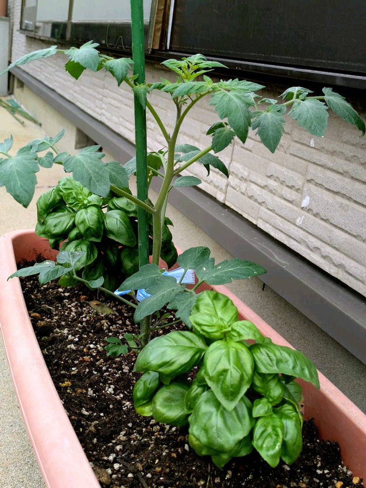 サントリーウェルネスで貰ったミニトマトとバジルを植えてみました🤔。