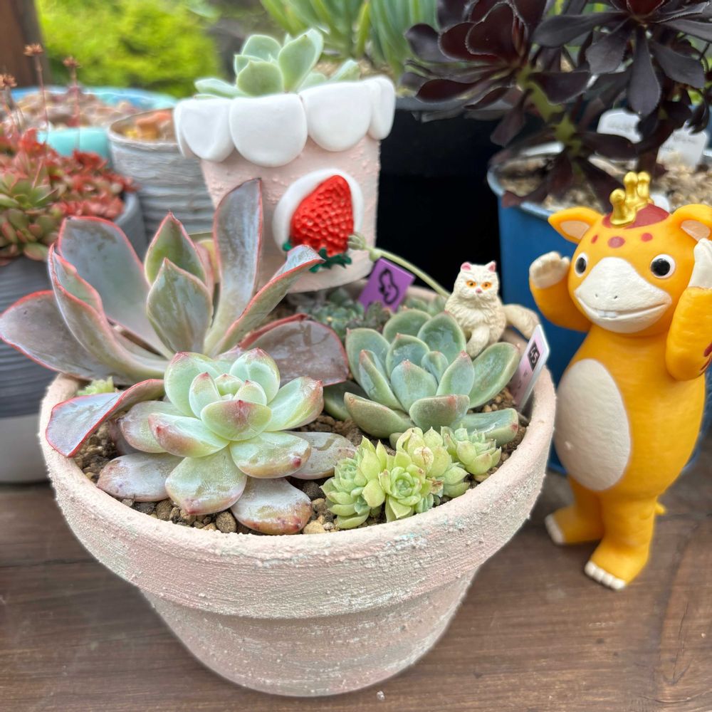 みんさんのリメ鉢にいただいた子たちを寄せ植え💓