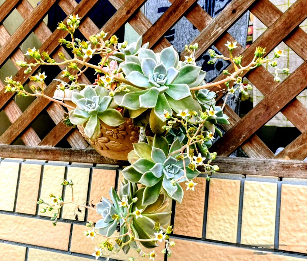 m&oさんのエケベリアのお花,先日の朝の散歩道,通り道のお宅のフェンスにの投稿画像