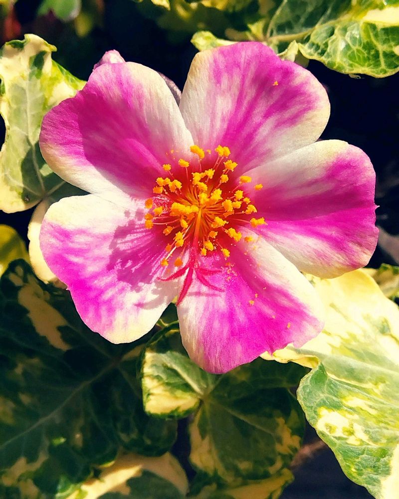 ④ ⑤ポーチュラカ♡💞スベリヒュ科 曇りでも夏の炎天下でも カラフルな花を咲かせるみたぃ〰ビビットなバイカラー(^^♪✴️