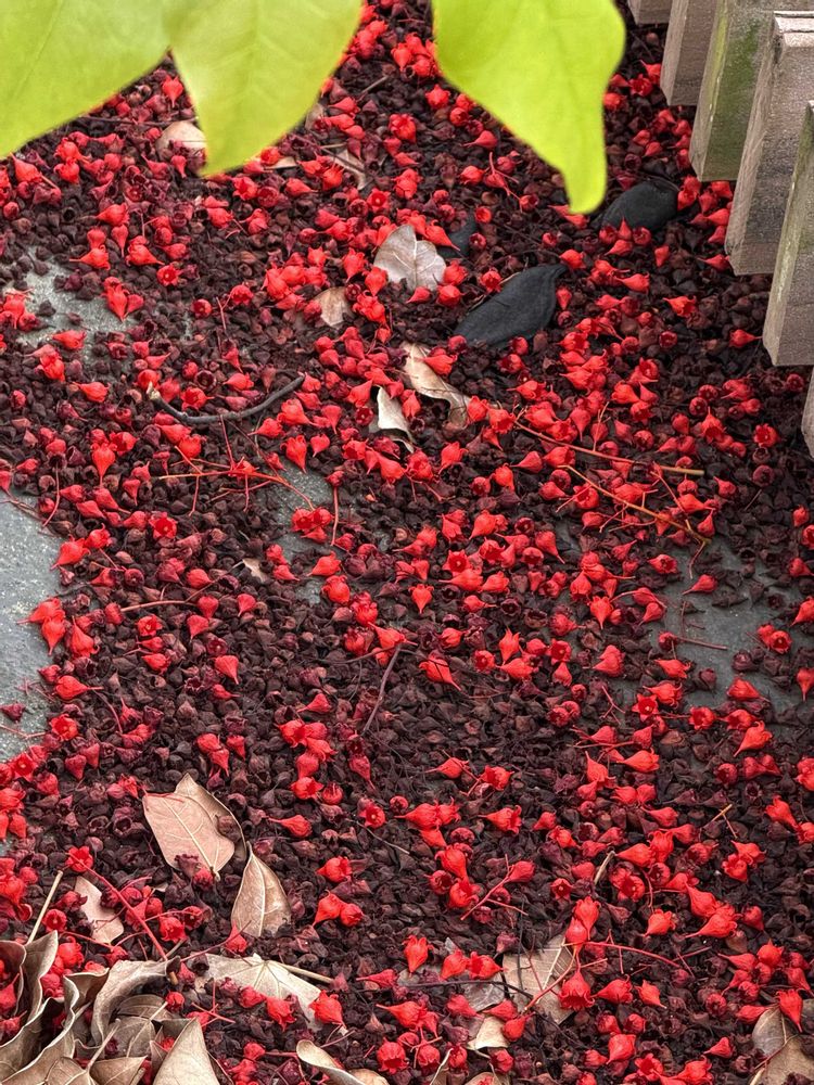 木によってはお花が終わって落ちて一面赤い絨毯みたい♥️♥️♥️♥️♥️