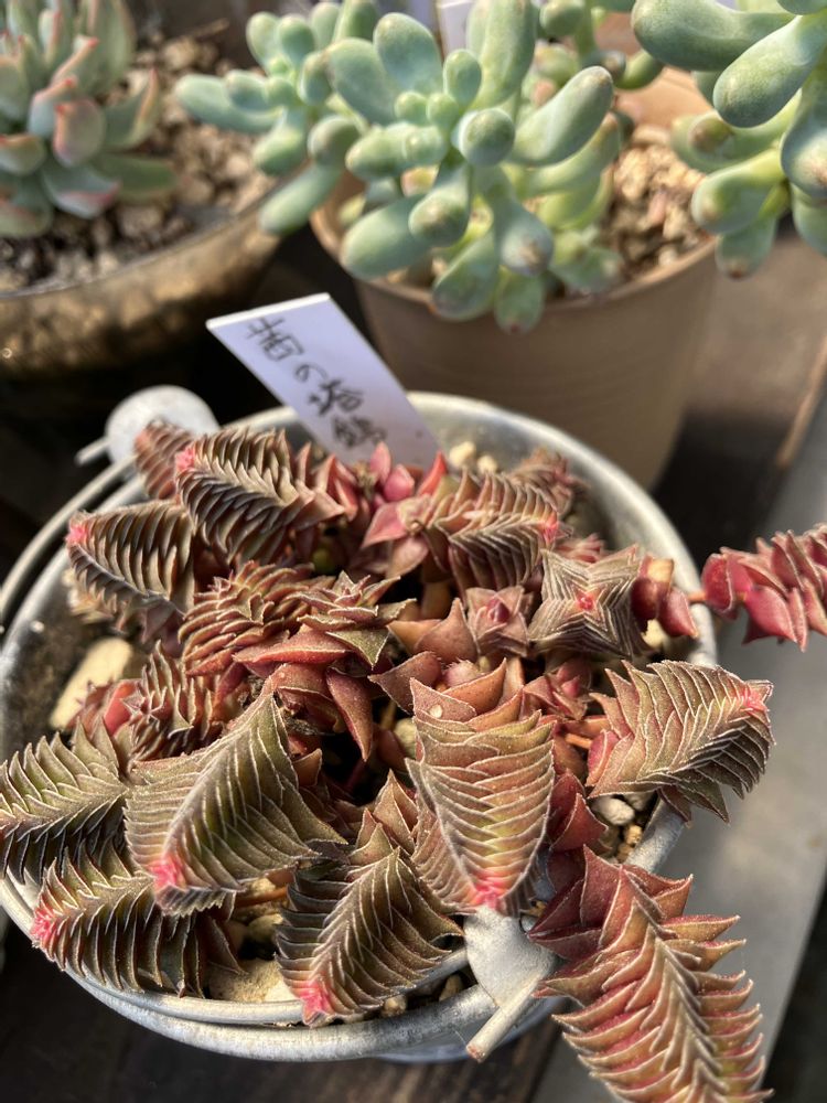 クラッスラ茜の塔錦 葉が幾重にも重なり流れる様に成長する姿形が好き