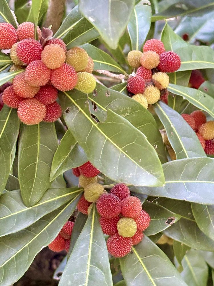 ヤマモモは、甘酸っぱいらしいです😄 ヒトも食べられるそうですが.鳥には不評みたい。実家の千両とかピラカンサの実はあっという間に食べ尽くされてたのに🐦⬛