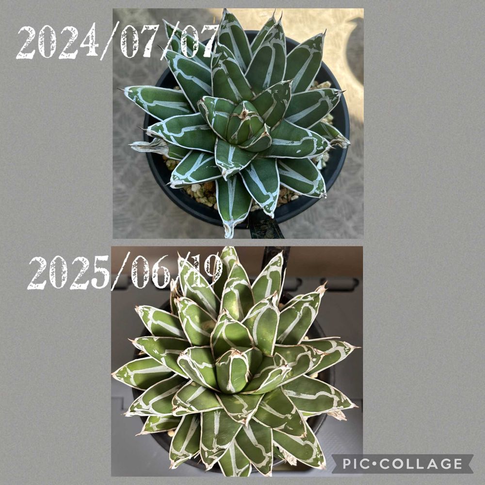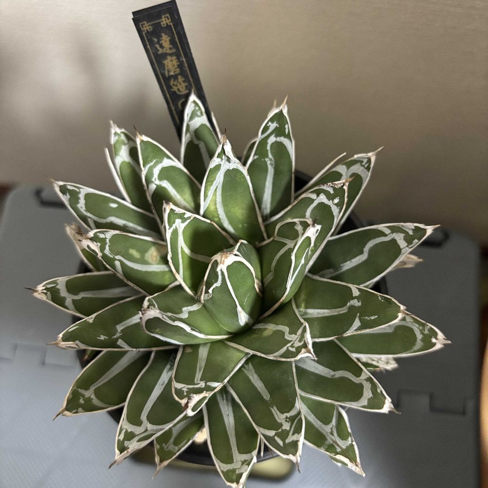 今日のお花がアガベだったので、我が家唯一のアガベ、達磨笹の雪さんです🥰