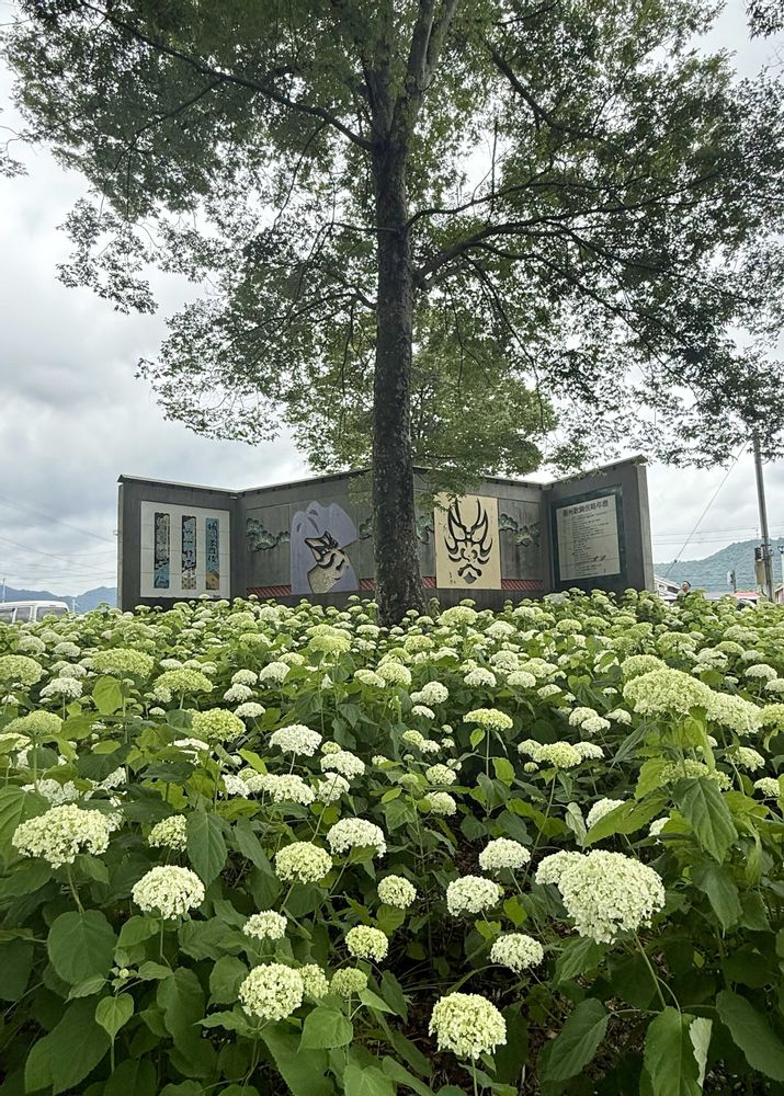 道の駅多可の駐車場の奥にある播州歌舞伎の壁画の裏手にたくさん咲いていたアナベル😊