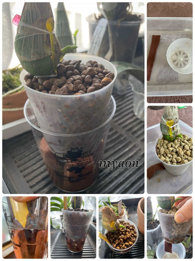 1枚目:グリーンノートさんのパフィオ チャンネルの底面吸水でパフィオを育てるを観て、クロウェシアで真似っ子してみました。上手に育てられたら水やりがかなり楽チンになるなぁ🤔吸水テープはアクリルのフェルト、用土は小粒の赤玉土、大粒より小粒の方がいいらしい。コップのお水が完全に無くなる前に鉢底より1センチぐらい下までお水を足す。さてさてどうなるかしら❓