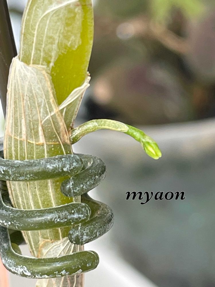 3枚目:デンドロビウム クリソクレピス こちらはユーザーさんから頂いた株。今日見たら蕾らしき物を発見❣️無事に咲いて欲しいな👀