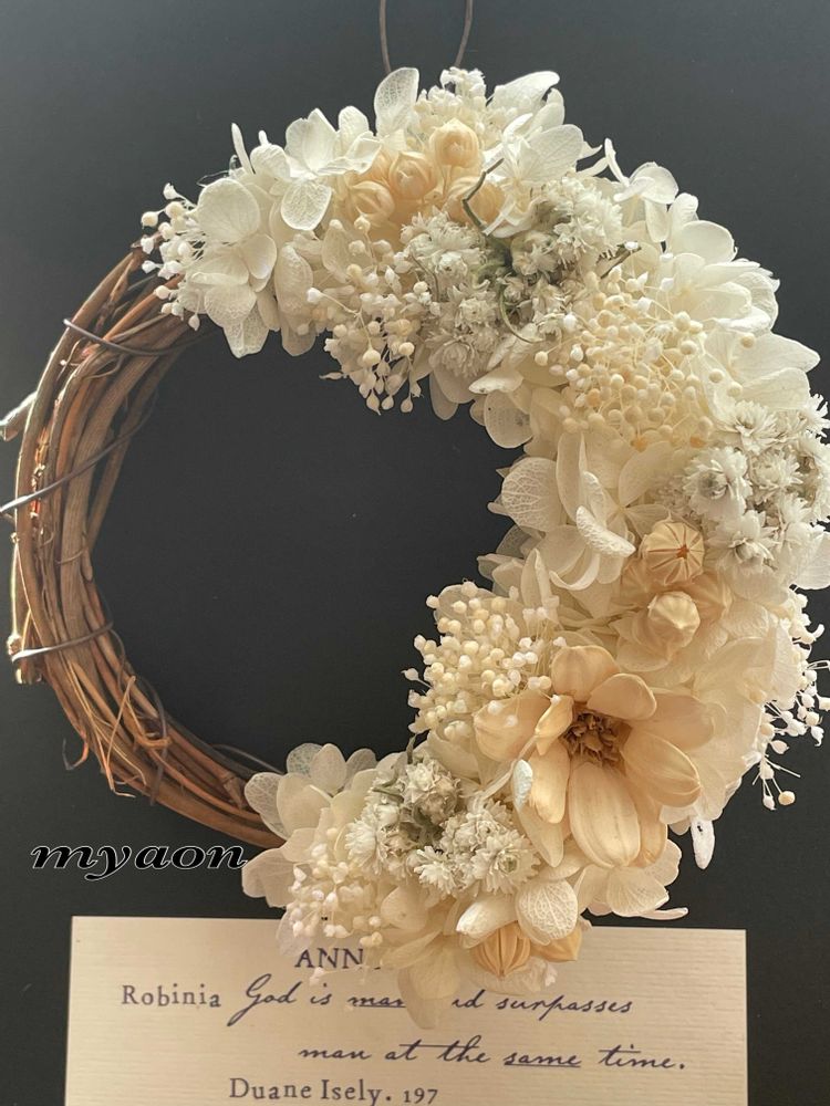 4枚目:ドライフラワーのハーフリース。娘が好きなクリエイターさんの作品。とある喫茶店に委託販売の商品を届けたとの情報を得て、娘と行って購入してきました。素敵でしょ?