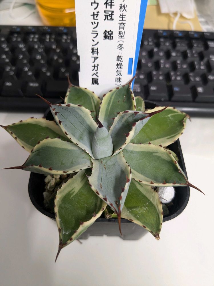 ①本日のお花はアガベ、ということでうちにある数少ないアガベ・吉祥冠錦さん。水やったら割れるし、かと言ってあげないと拗ねるし、私には難しい子です🤣