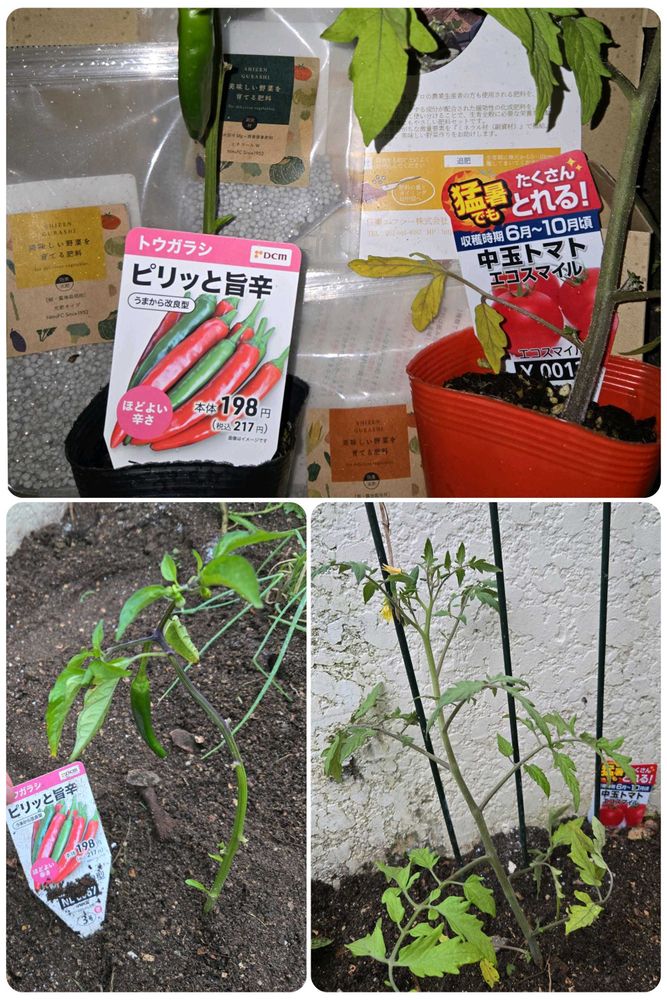 とうがらしと猛暑でも採れる中玉トマト買って植えてみたよ(pq゚∀゚*○)
