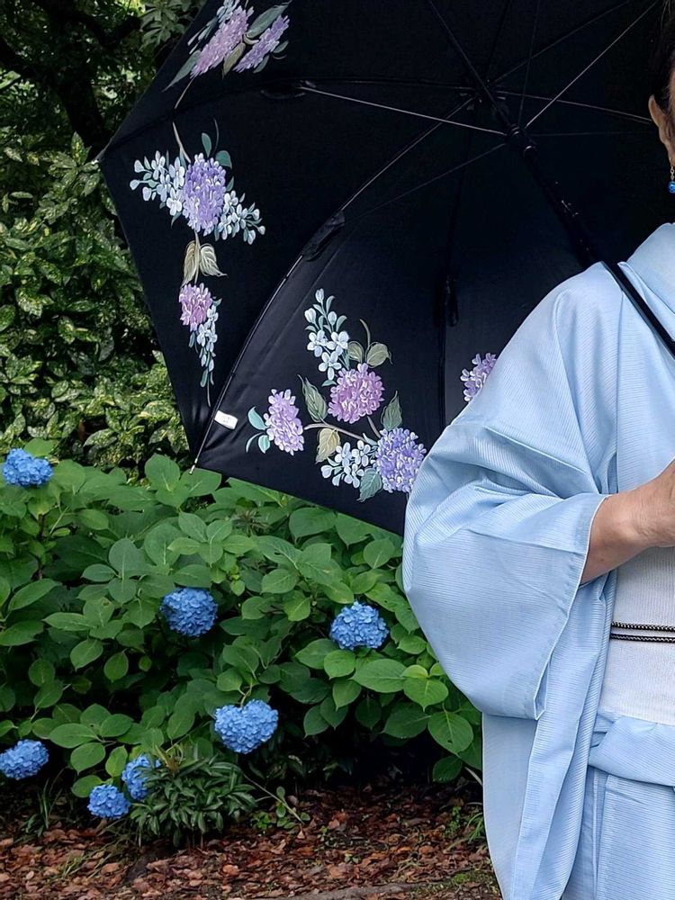 ③紫陽花のトールペイントの日傘をさして☂️