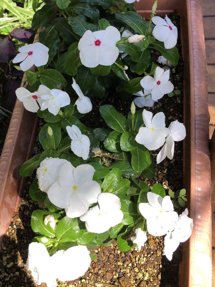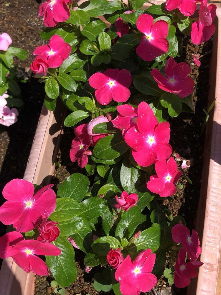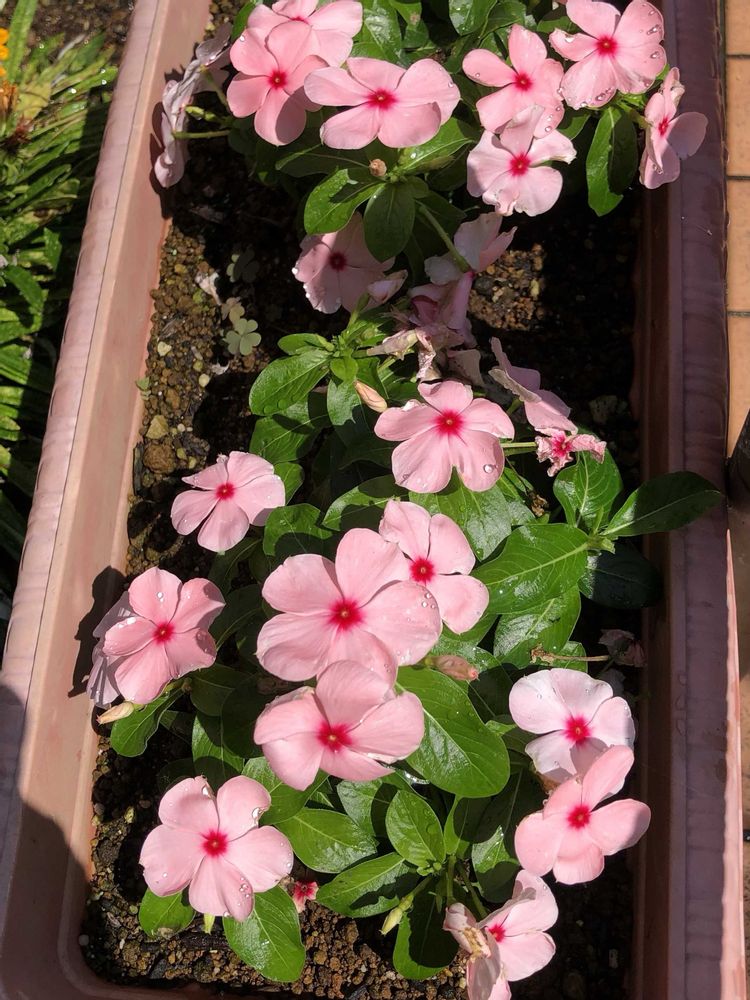 プランターに2ポットづつ植え込みした『ニチニチソウ』さん。