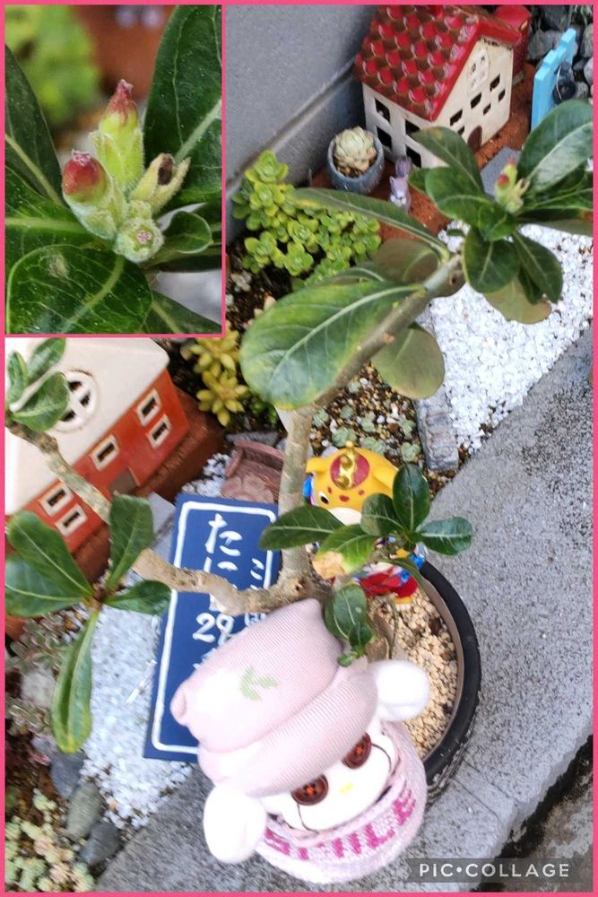1枚目は、今年もアデニウム天空の薔薇に蕾がつきました。
