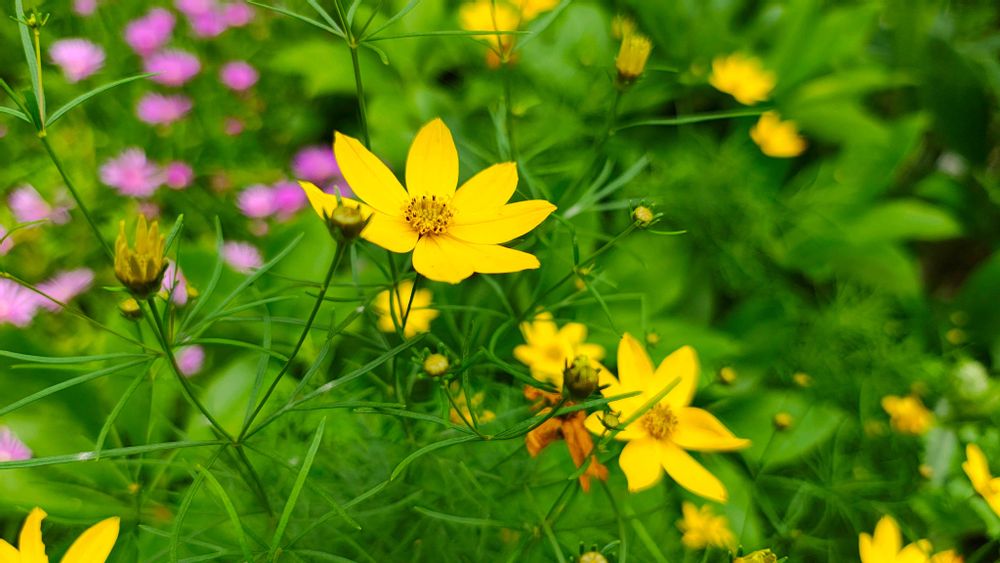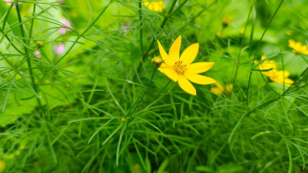 イトバハルシャギク、これ、黄色に染まらないのでなかなか画像映えしないんだけど、葉っぱや茎の質感が細いだけに柔らかくてふかふかに見えちゃうんよね。