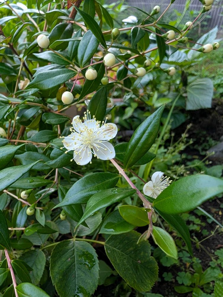 梅みたいな花「銀梅花」マートルと言い 葉っぱ🌿を触ると香りしますよ〜。