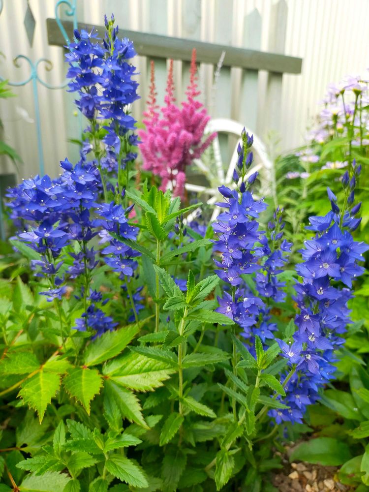 ピンクの花は、アスチルベで、品種名は、ブラックパールズといいいます😊