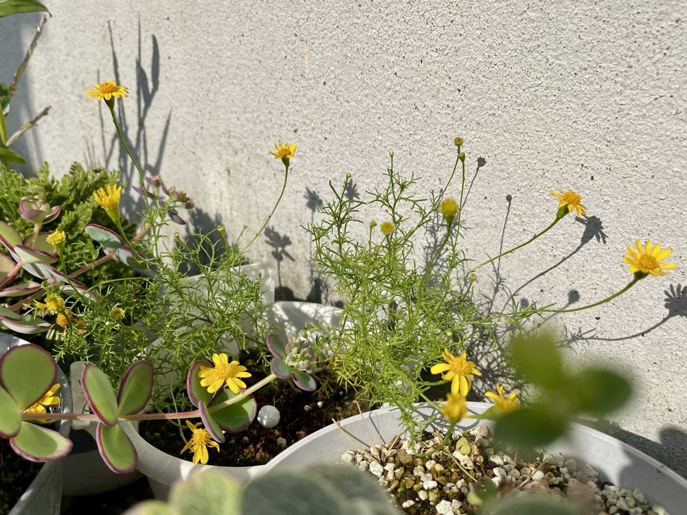 砂利の駐車場から少し鉢上げしておいたダールベルグデージーが咲いています🌼🌿🌼🌿🌼🌿