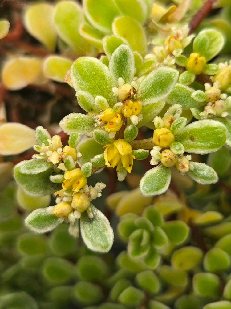 斑入りの葉っぱだけを楽しむマンネングサと思っていたら、よーく見たら👀 花が咲いているではないか!