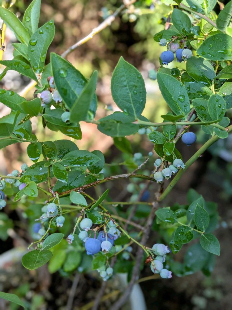 庭ではブルベリーが熟し始めているね👏😃🎶