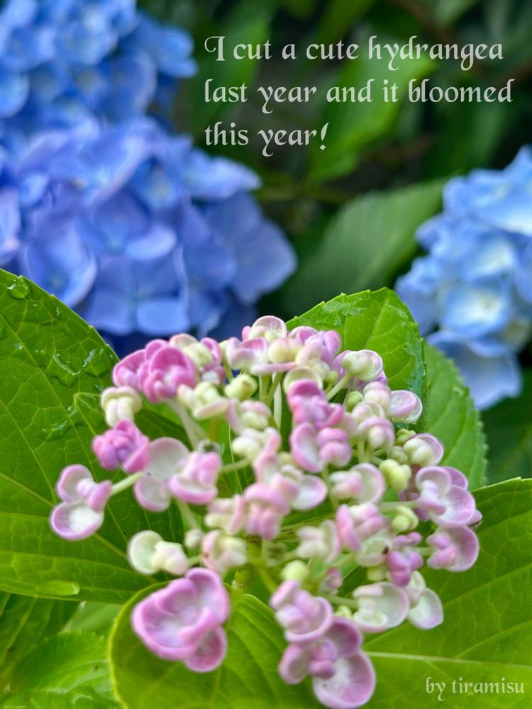 挿し木の紫陽花なの?淡いピンク色が素敵です💓