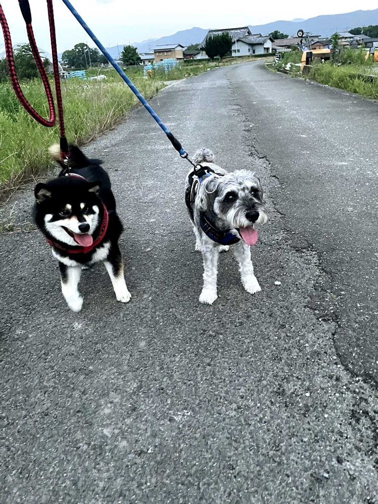 蘭丸君とお友達の柴犬ちゃんお互い自然にお散歩を楽しめてる感じでなんか雰囲気いいなぁ😍🐶🐾💕̋ ੯ꔷ̀͡ᓑ\とても癒される写真です♪(๑ᴖ◡ᴖ๑)♪