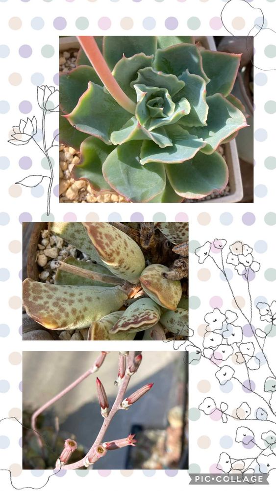 今日は夕方多肉さんたちに水あげなきゃ☺️ブルーフリルズさんお花咲くかな下葉は見えないけどスカートはいてます😅天錦章さんもお花咲いてます♪地味だし小さいけど😉お花🌼