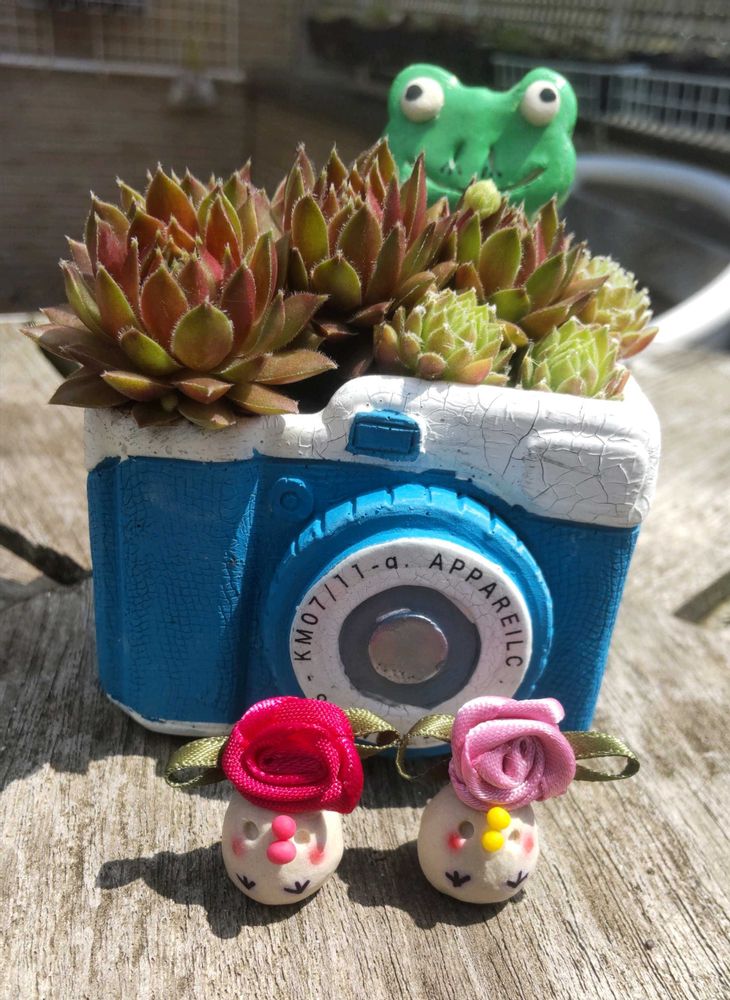 anzuさん作ハナゲ🐸と映え代表のJUSHIさんから頂いたカメラ鉢に協力してもらったわ😍💕