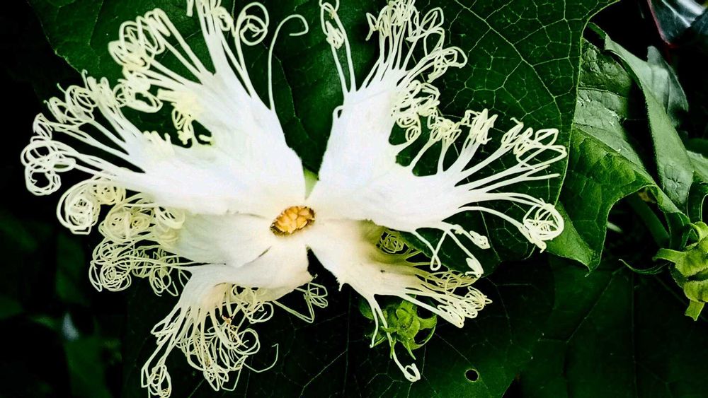 散歩道(京都丹波亀岡 古世町)の黄色カラスウリの開花です。