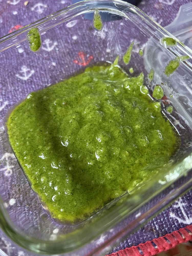 葉が育ってきたので、ジェノベーゼソース作ったよ👍