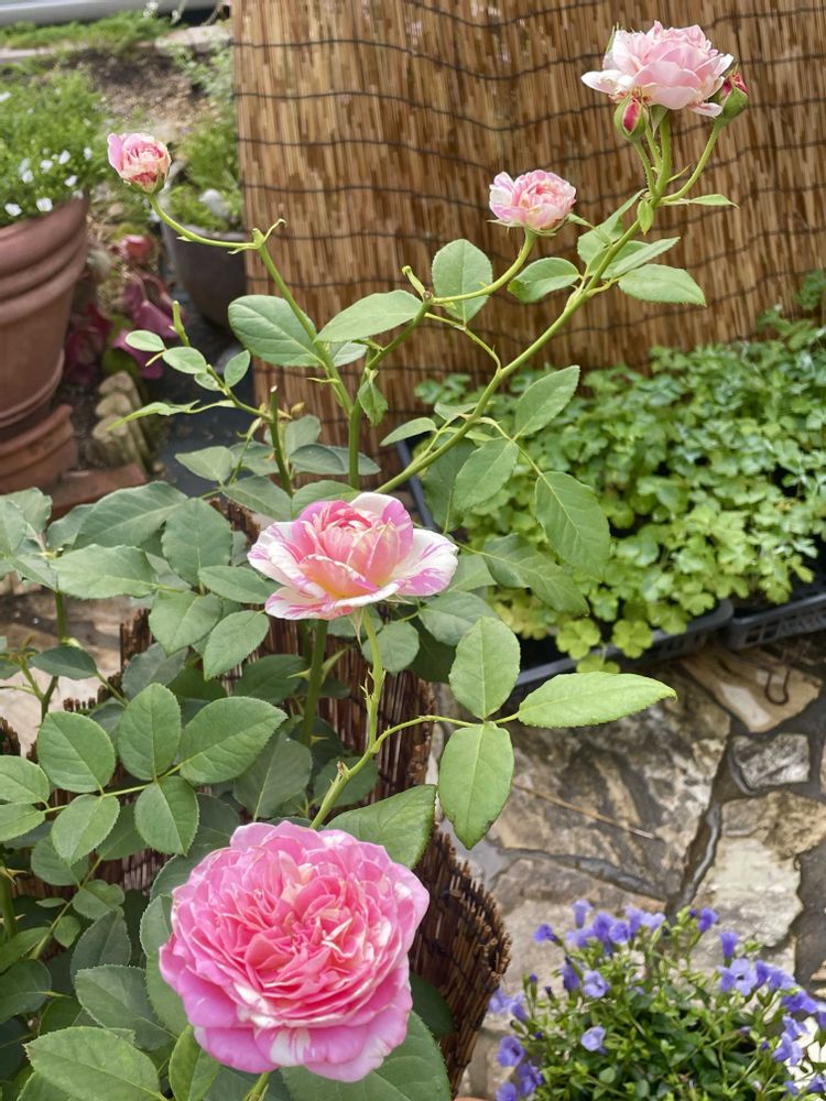 フランス薔薇デルバールのクロードモネさんは今年は花数も多く背もあって素敵に咲いてます💕