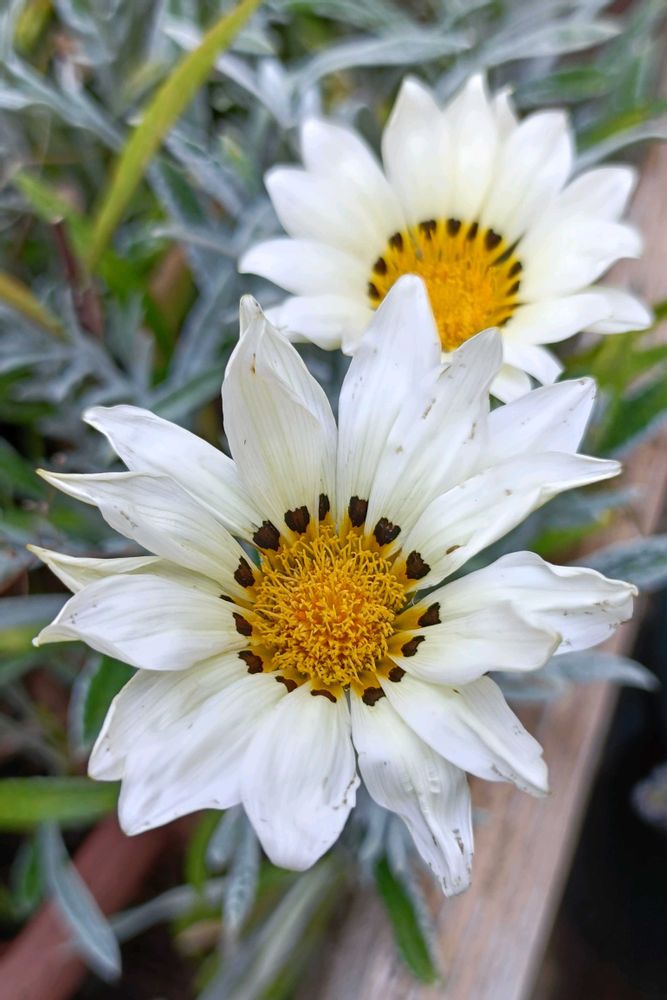 2枚目は、白いガザニアが少しずつ花数増えてきました😉