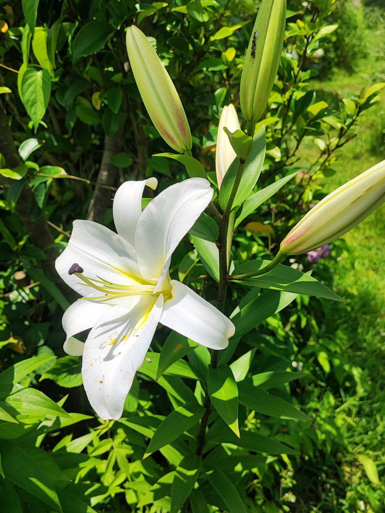 今日も暑いです。本日の庭の百合。オリエンタル系の白は、よく増えたってのをメルカリで譲ってもらった子です。1種類しか植えてないのに2種類咲くようになったとの事で、混合で球根を譲ってもらったので、楽しみにしてます。確かにまだ咲いていないものはつぼみの形がラグビーボールみたいに膨らんでいるので、違う感じで咲きそうです。どこかで交雑したか、先祖の血統が強く出たか...楽しみ。