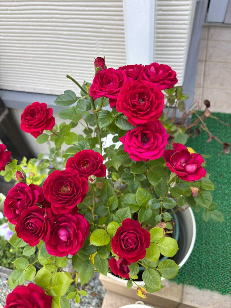 赤いミニ薔薇も夕方にはカリカリになってました💦