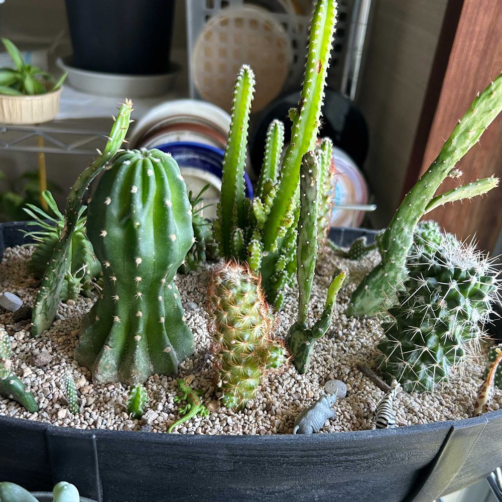 サボテンの寄せ植え3種類ほどジュレってしまいました。😰数日前の雨で湿気たんですね。久しぶりに晴れてゆっくり眺めてたら根元から痛んでました。早く気がつけばよかったな。🥺鉢替えしてみました。