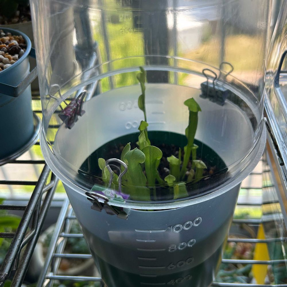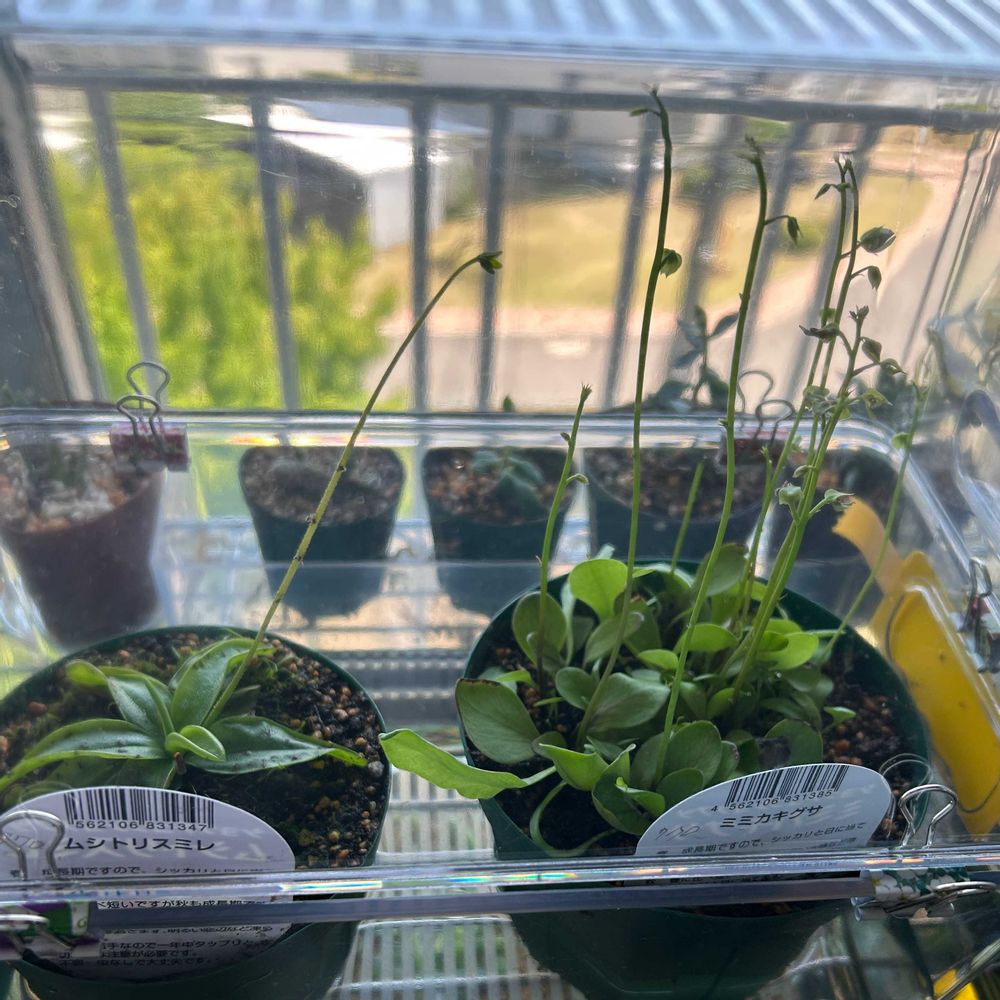 ②③④⑤は、食虫植物の子たち。乾燥が苦手なのでみんなフードをかぶってご機嫌さんです。この子たちは蒸れ大好きですからね。😁蒸れやら風通しなど難しいですね🤨