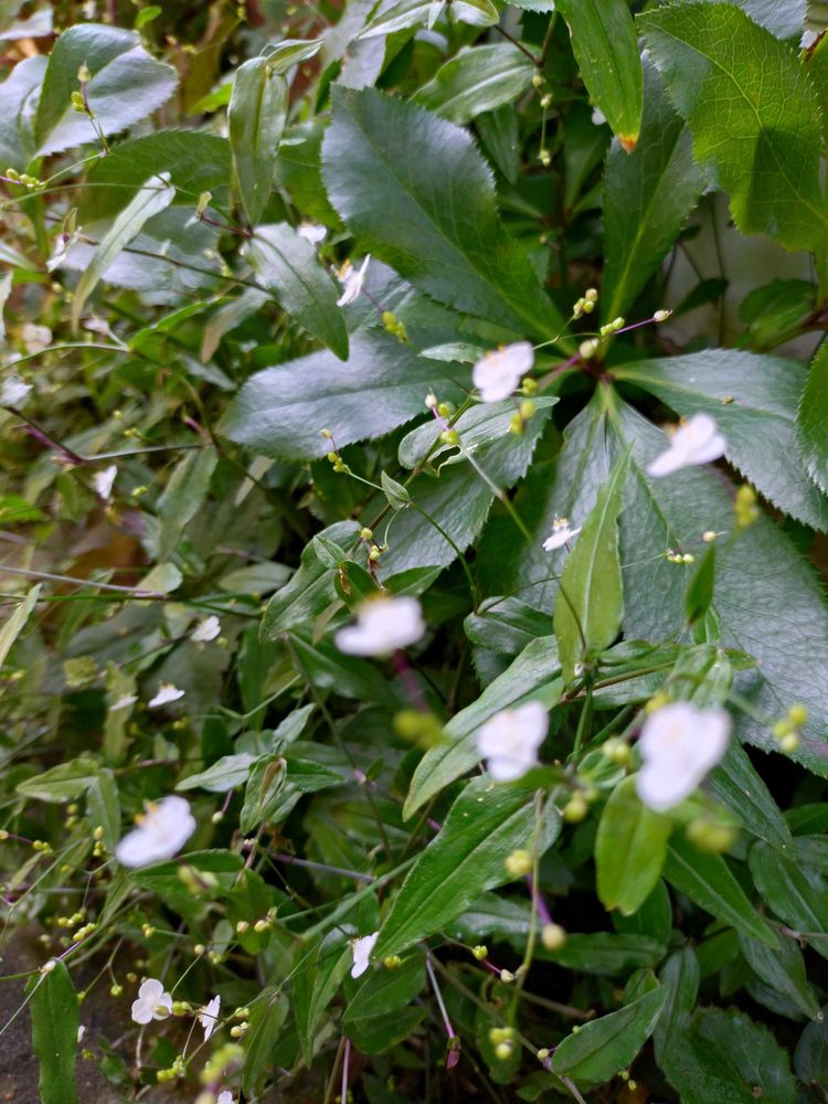 紅葉の下の通路の横に居場所をみつけて毎年咲いているブライダルベールです。