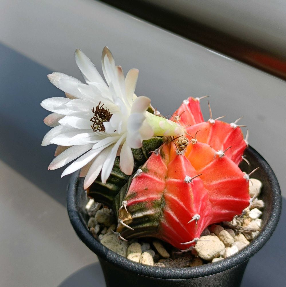 緋牡丹は葉緑素が無いから単体だと育たないですよね 緋牡丹錦だと少しの緑色があるから、そこで光合成が出来るのかな?