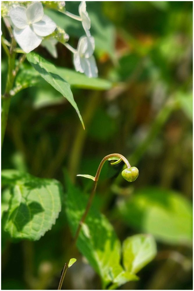 ②レンゲショウマの赤ちゃん と~っても小さな蕾がヤマアジサイに見守られて…♡