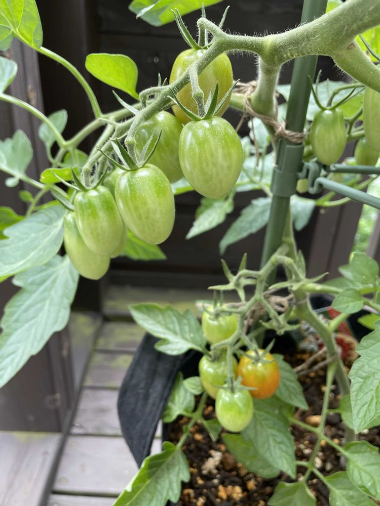 2階ベランダで、ミニトマト育てています。