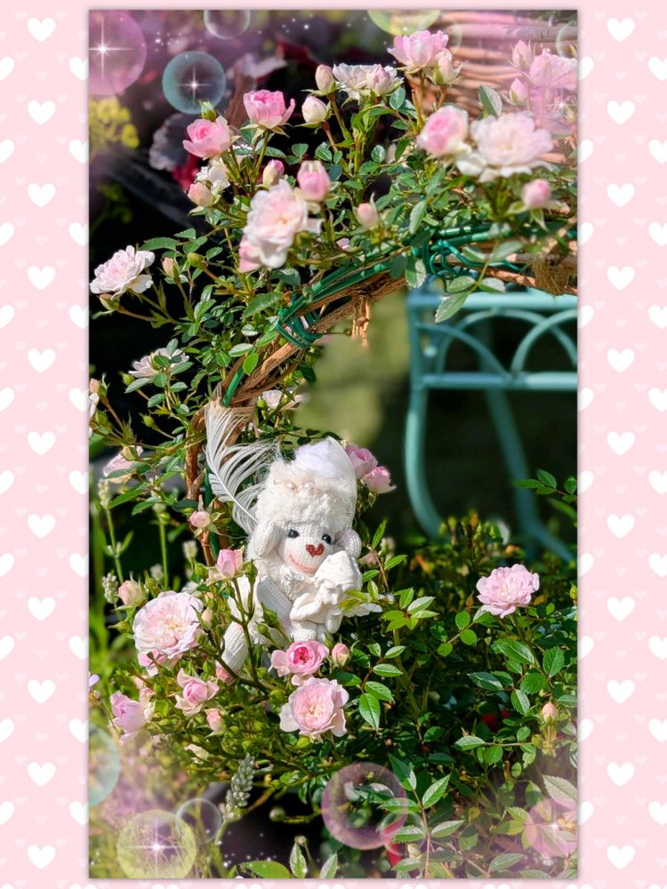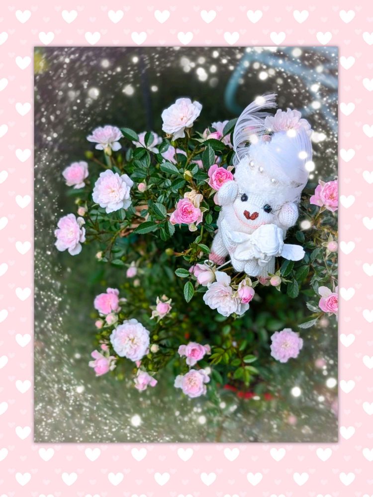 ピンクのミニバラと天使みたいなプチテンモンちゃんが可愛い😍