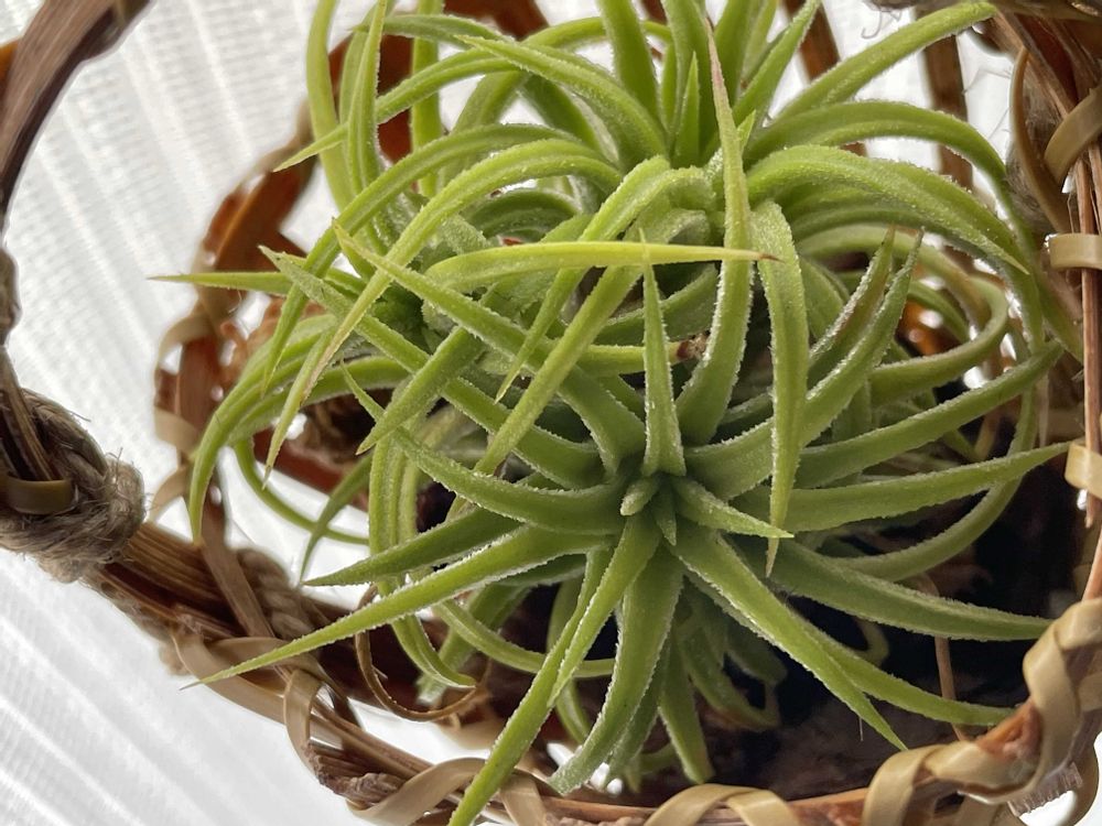 チランジアは2年くらい育ててますが、赤くもならず。ベランダに下げてあります。🍀*゜