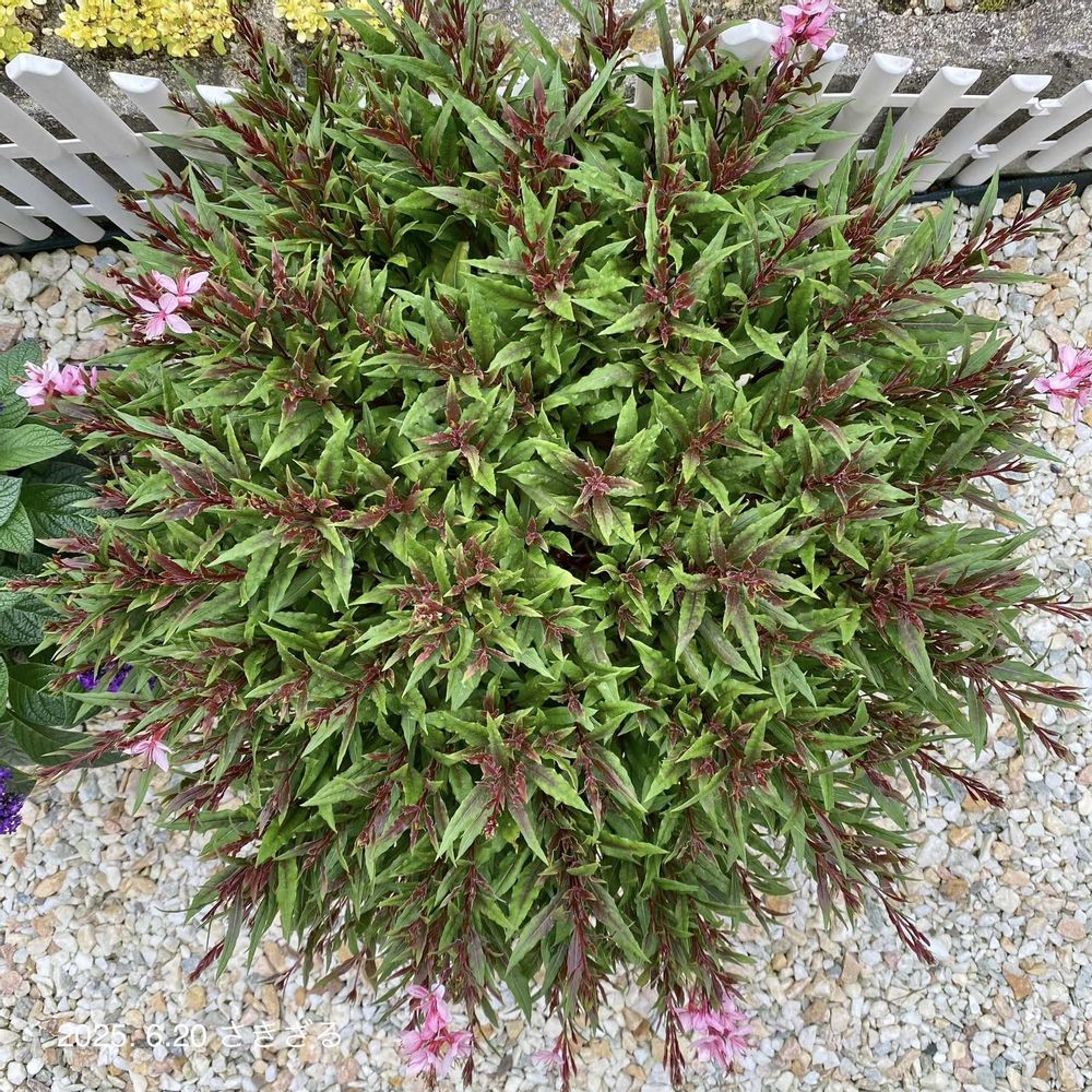 ガウラさん根がピンクでときめき😍なんともいえない葉色でスクスク育ち癒され🤩お花を見てまたときめいて💓手もそこまでかからないなんとも可愛いらしい子です🐵🫶