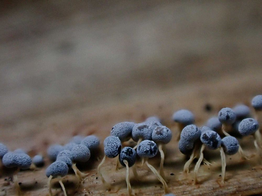 この青いアタマの子はシロジクモジホコリではないか?とのことです。