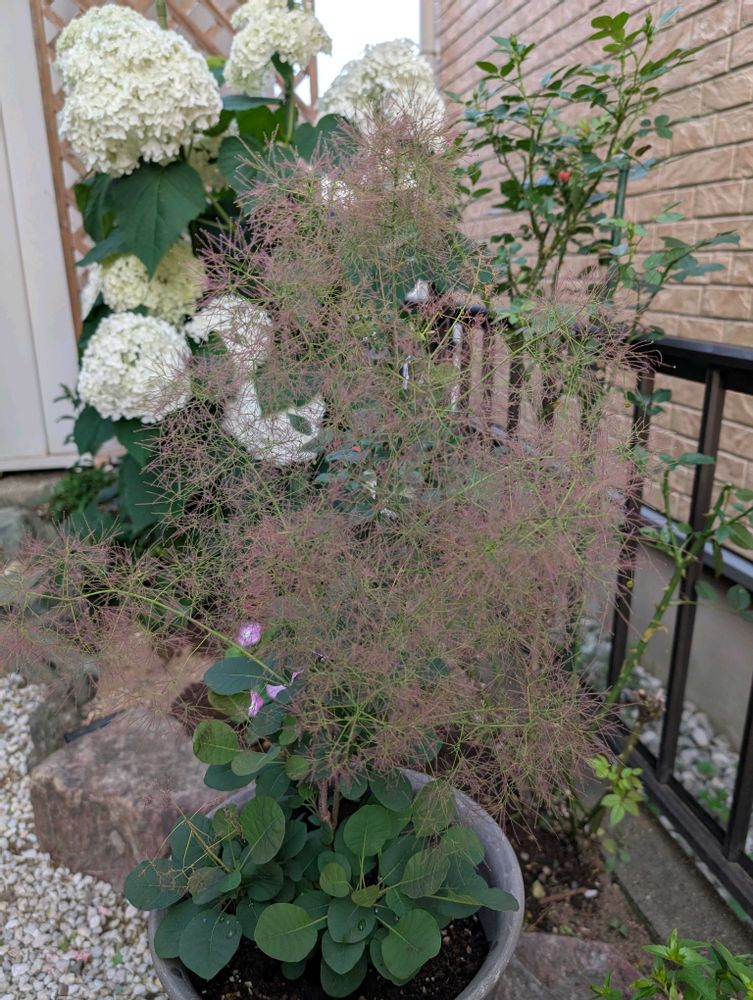 スモークツリー越しのアナベル✳️✳️✳️