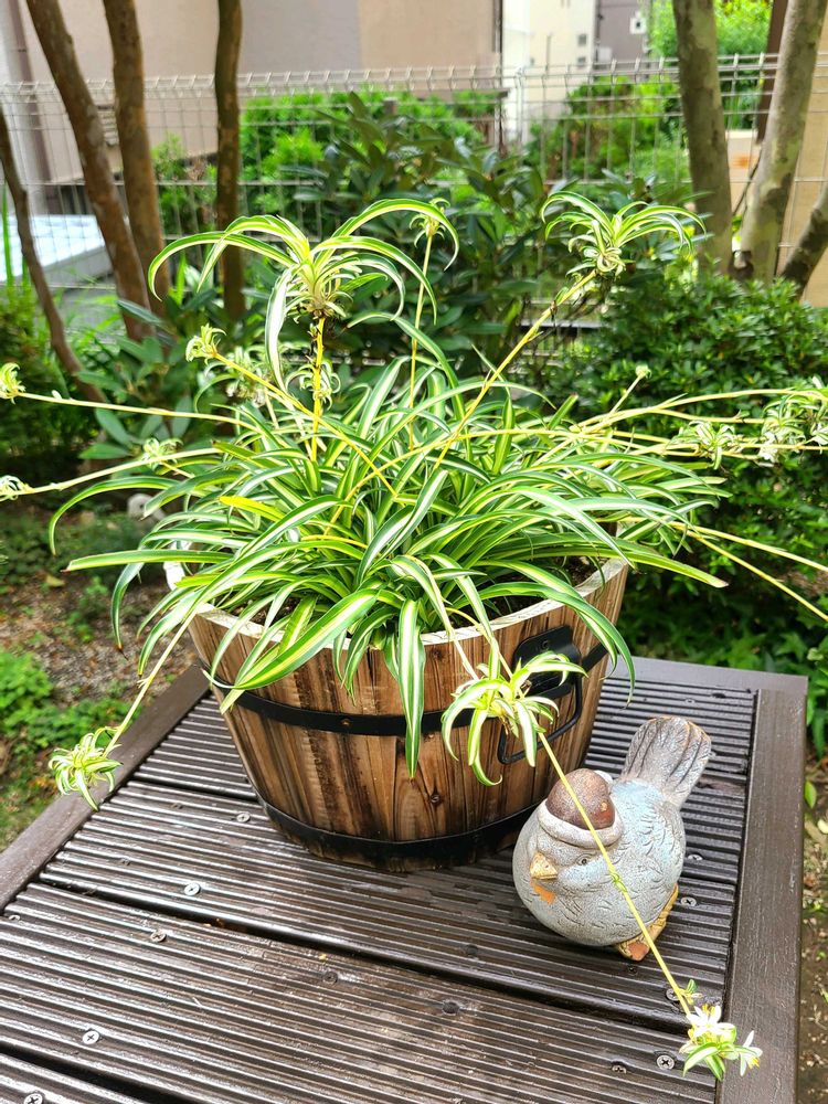 放射線状に広がるオリヅルランの葉を眺めていたら清々しい気持ちになりました🌿